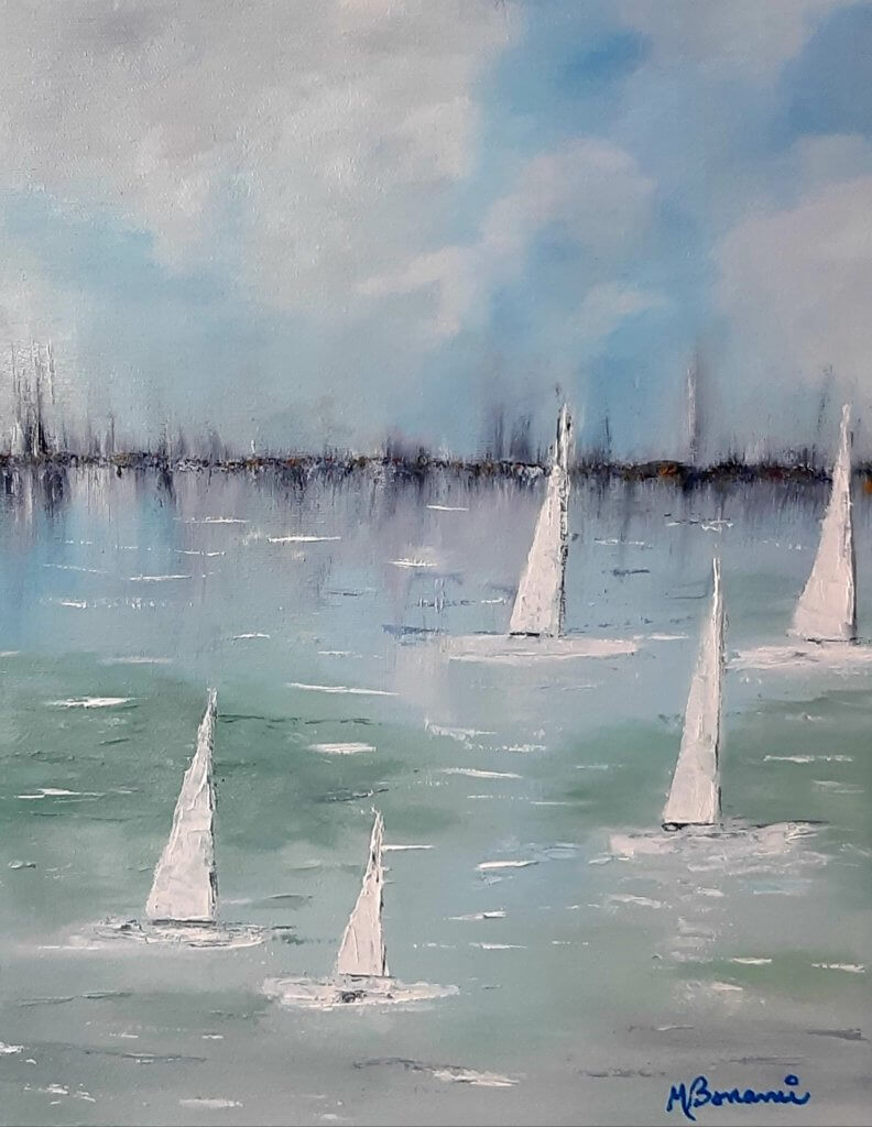 Madame Levert a choisi la toile de l’artiste Jacques Lemieux « Face à la montagne» et la toile de l’artiste Micheline Bonami «Les voiliers».